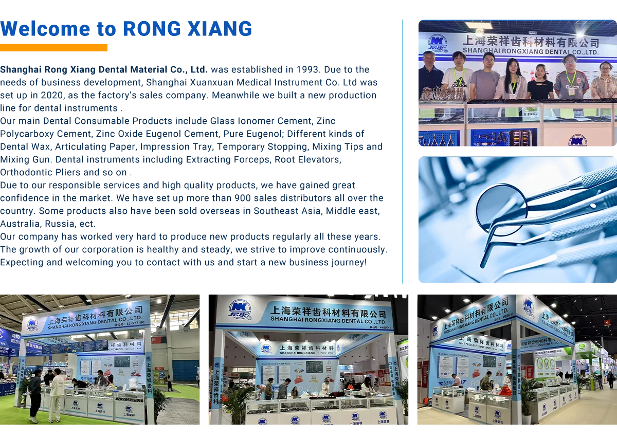 Productos principales:Cemento de ionómero de vidrio, cera dental, papel de articulación dental, Instrumentos dentales